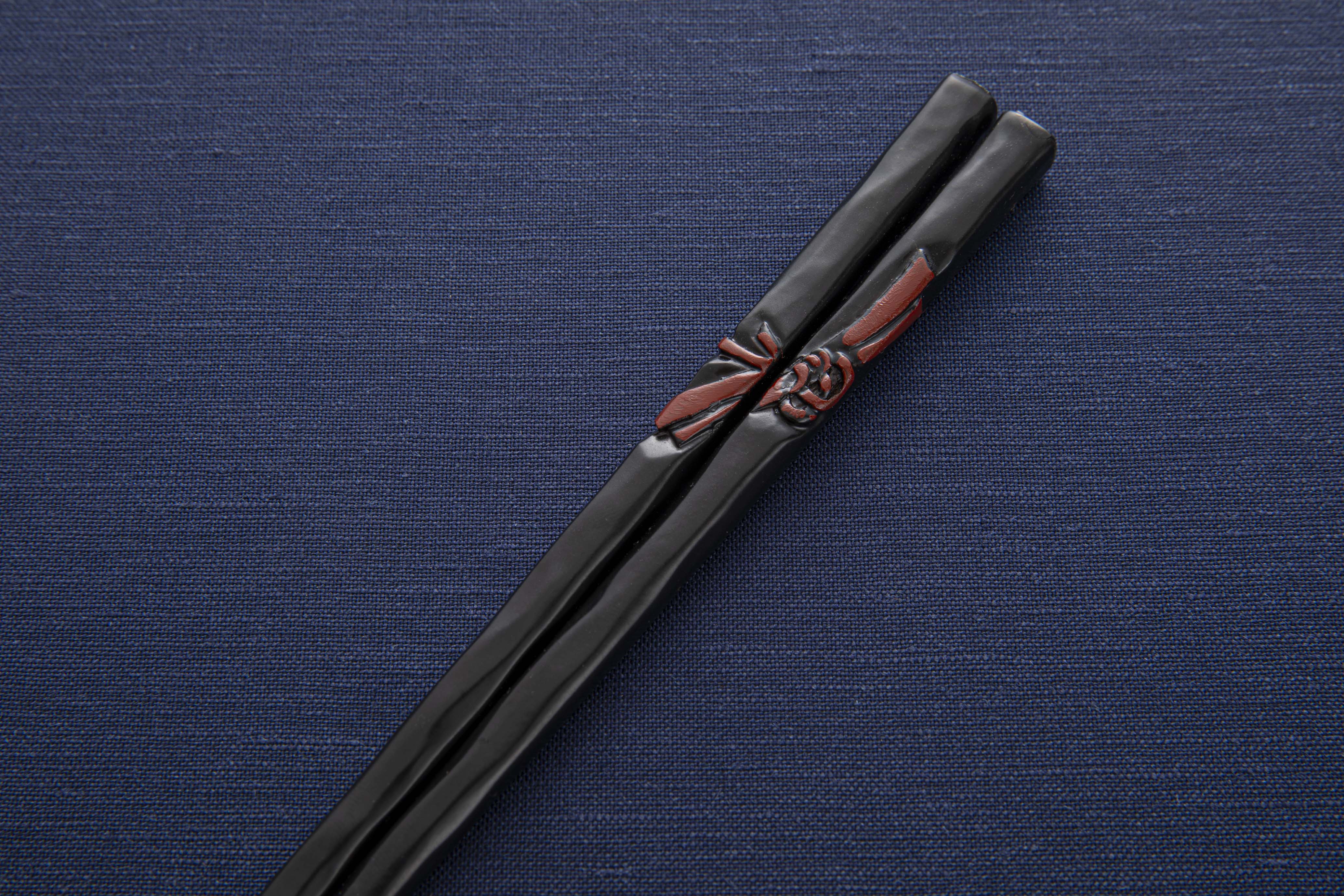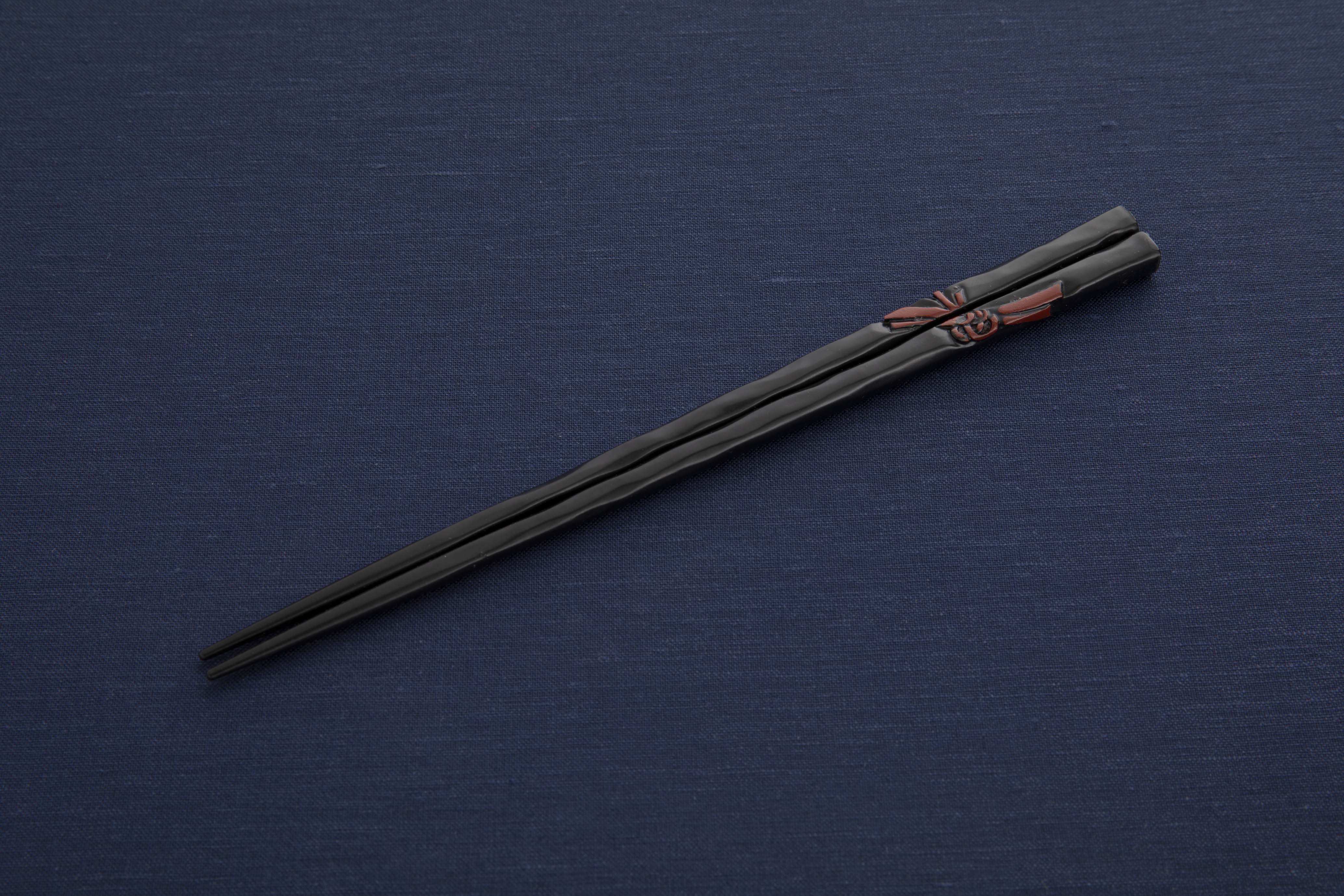 トップ > 鎌倉彫 箸・スプーン・フォーク > 箸 > 一膳箸 > 花塗一膳箸 結び 黒