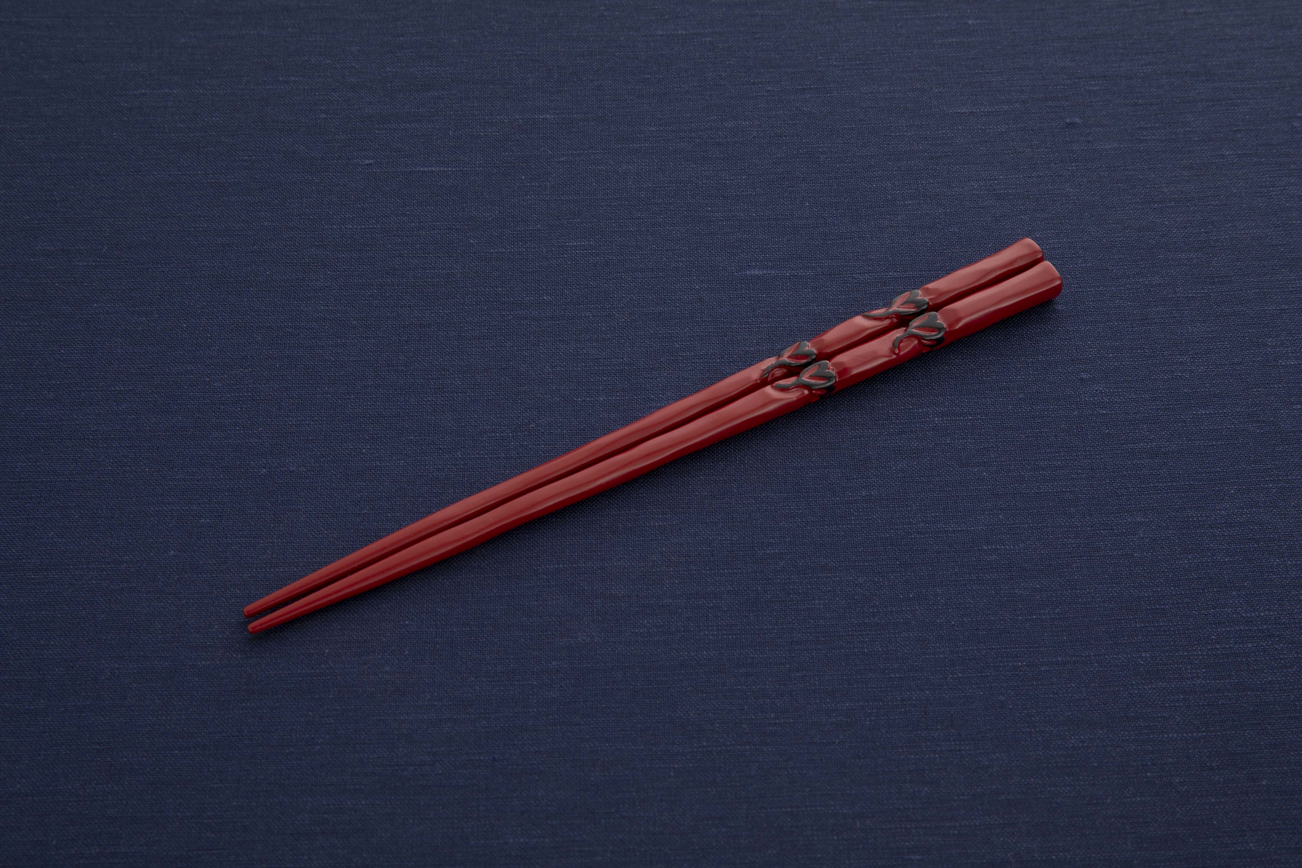 鎌倉の鶴岡八幡宮でも有名なイチョウをデザインしました。生命力のシンボルとしても人気のお柄ですので、様々なお祝い品としても最適です。朱の漆が華やかなお箸です。