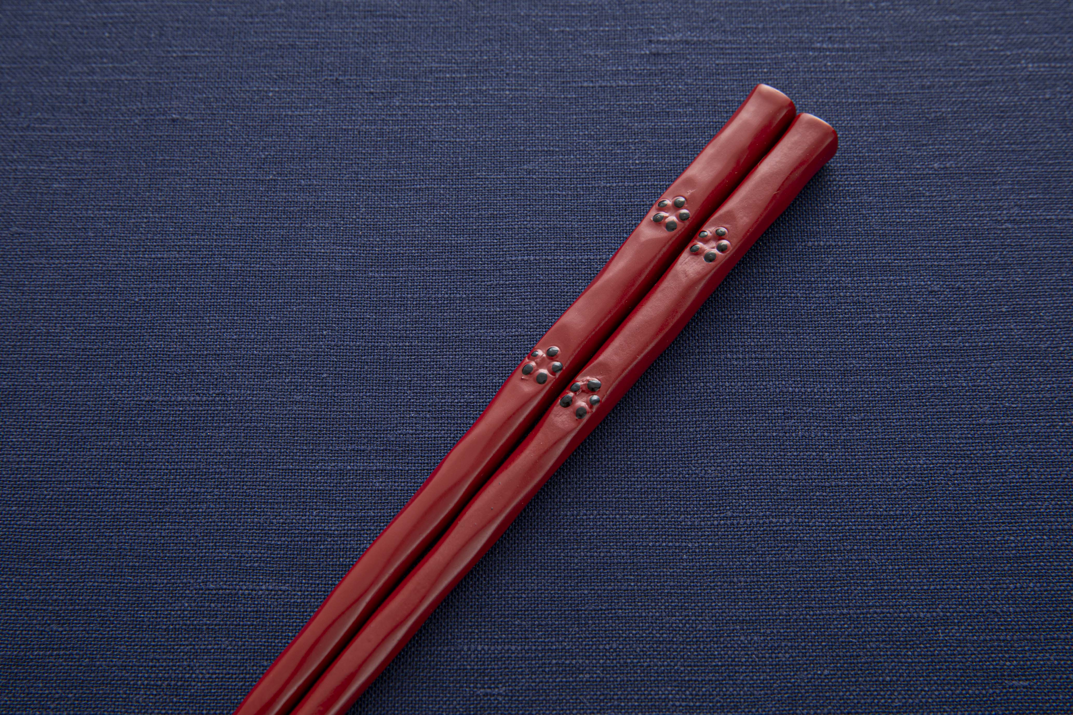 トップ > 鎌倉彫 箸・スプーン・フォーク > 箸 > 一膳箸 > 花塗一膳箸 梅鉢 朱