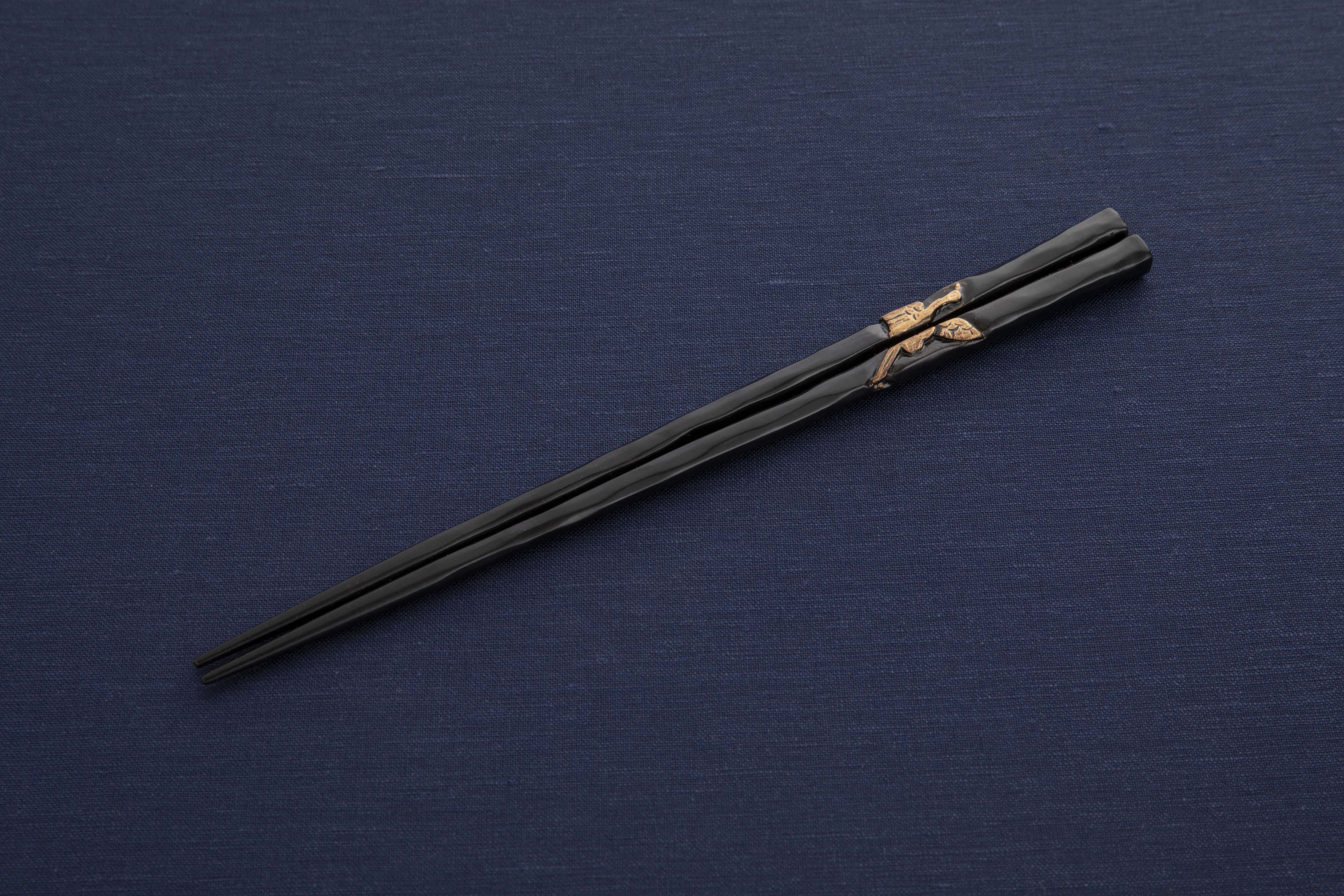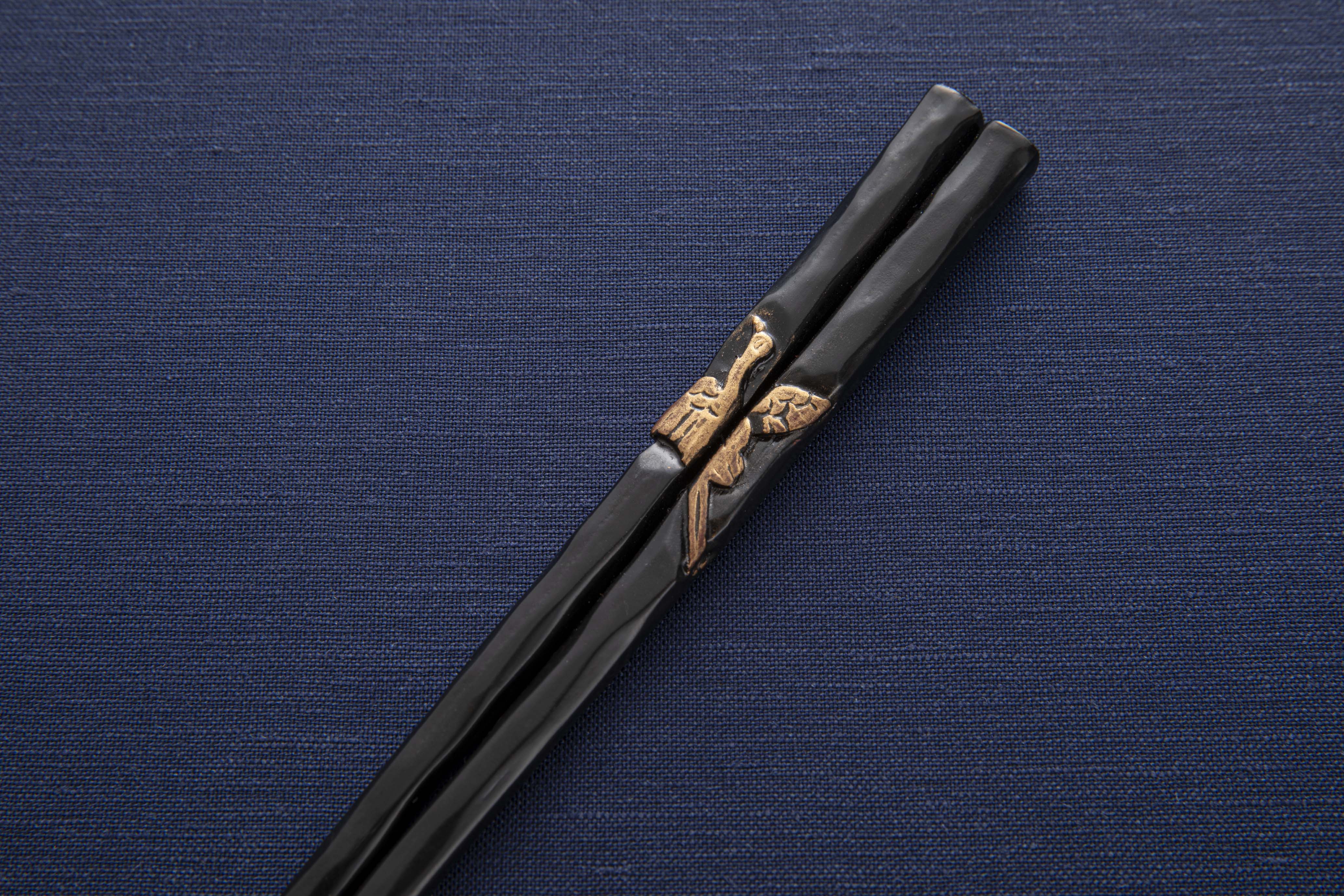 トップ > 鎌倉彫 箸・スプーン・フォーク > 箸 > 一膳箸 > 花塗一膳箸 鶴 黒に金彩