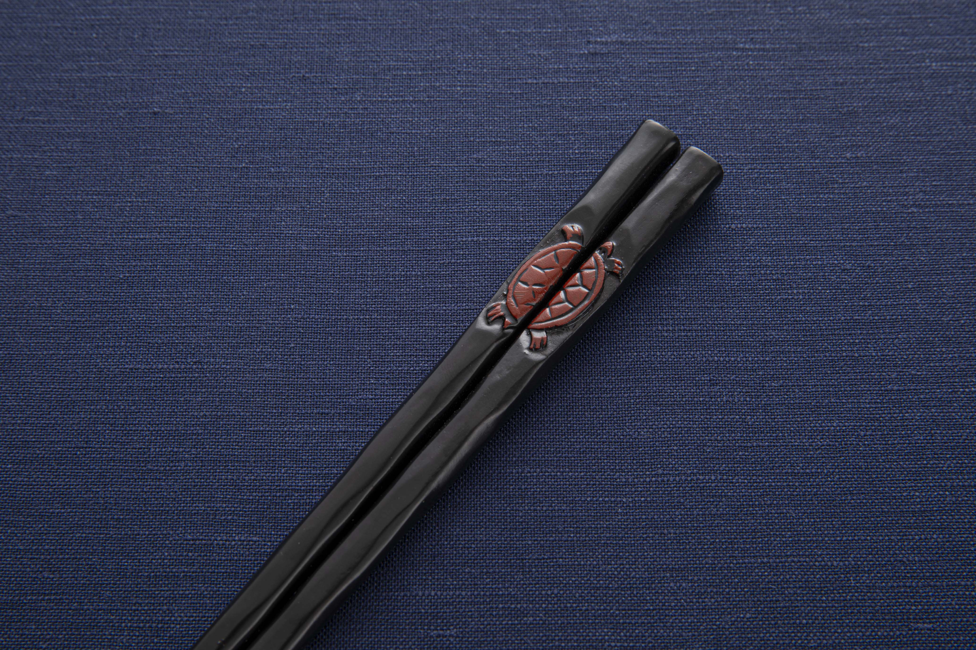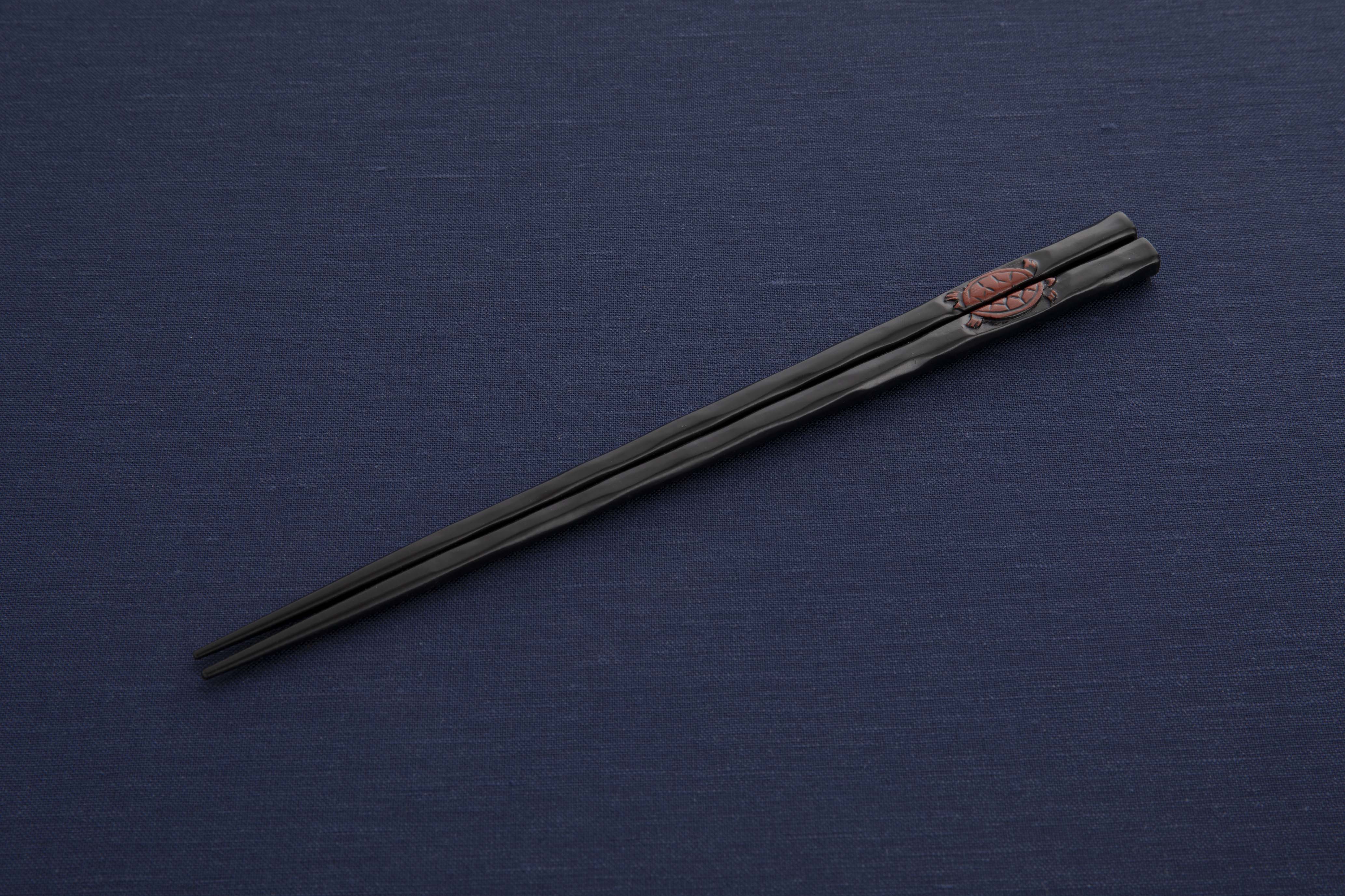 トップ > 鎌倉彫 箸・スプーン・フォーク > 箸 > 一膳箸 > 花塗一膳箸 亀 黒