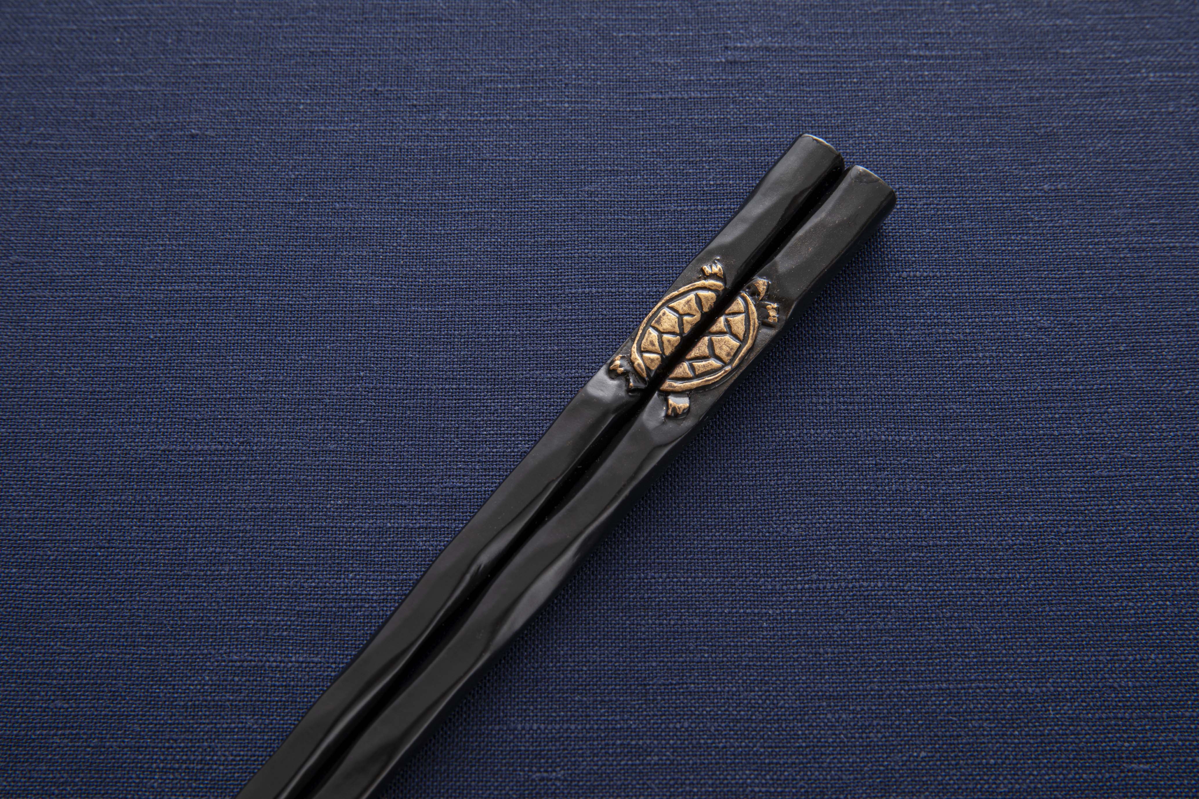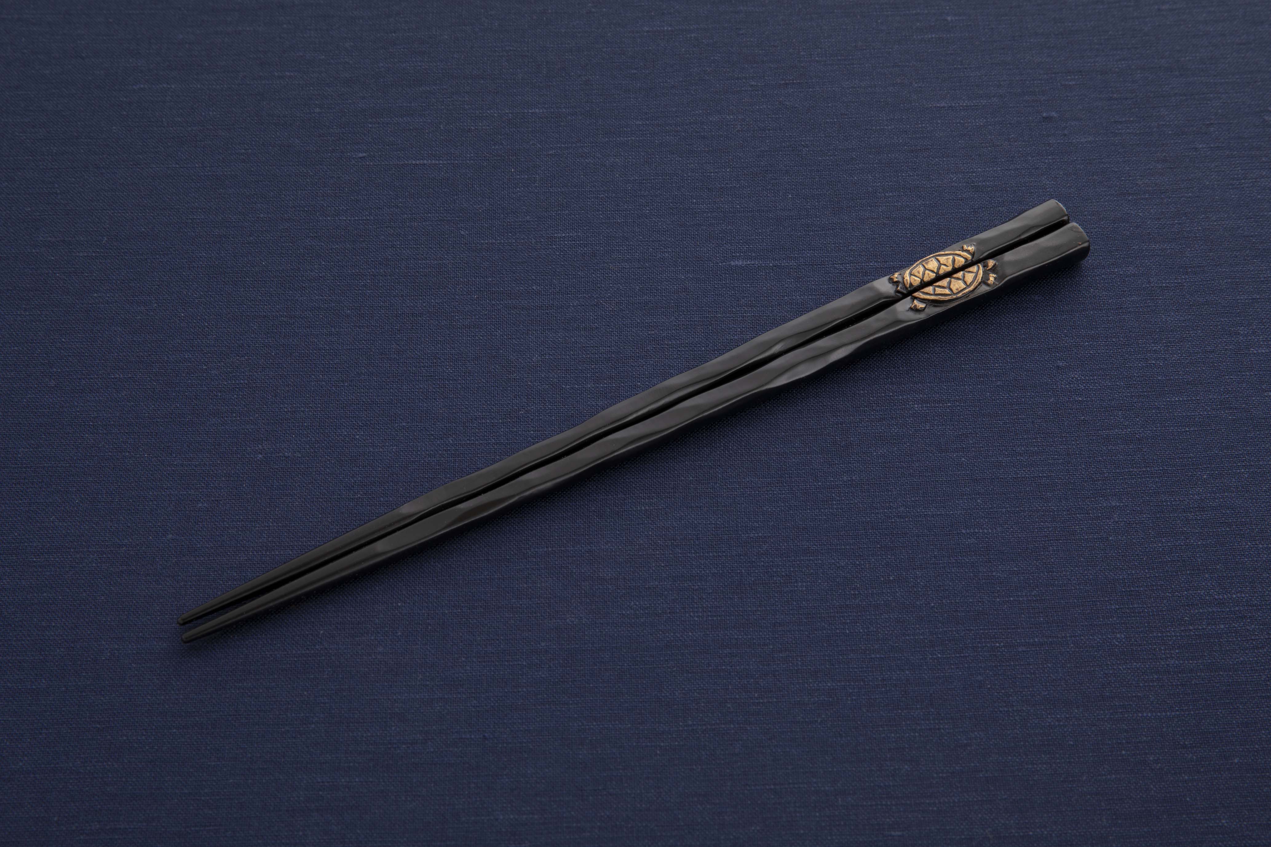 花塗一膳箸 亀 黒に金彩 紙箱入り