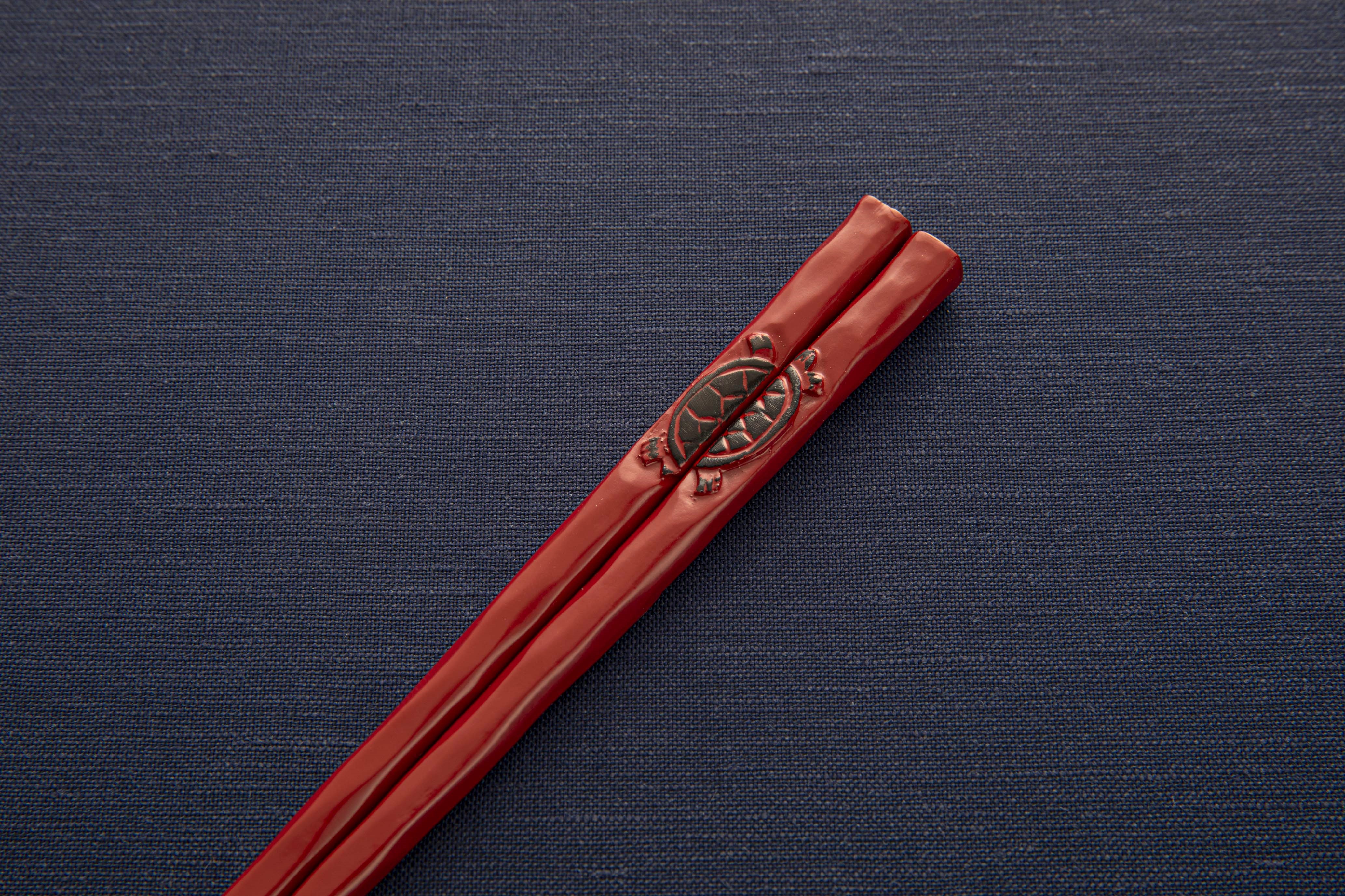 トップ > 鎌倉彫 箸・スプーン・フォーク > 箸 > 一膳箸 > 花塗一膳箸 亀 朱