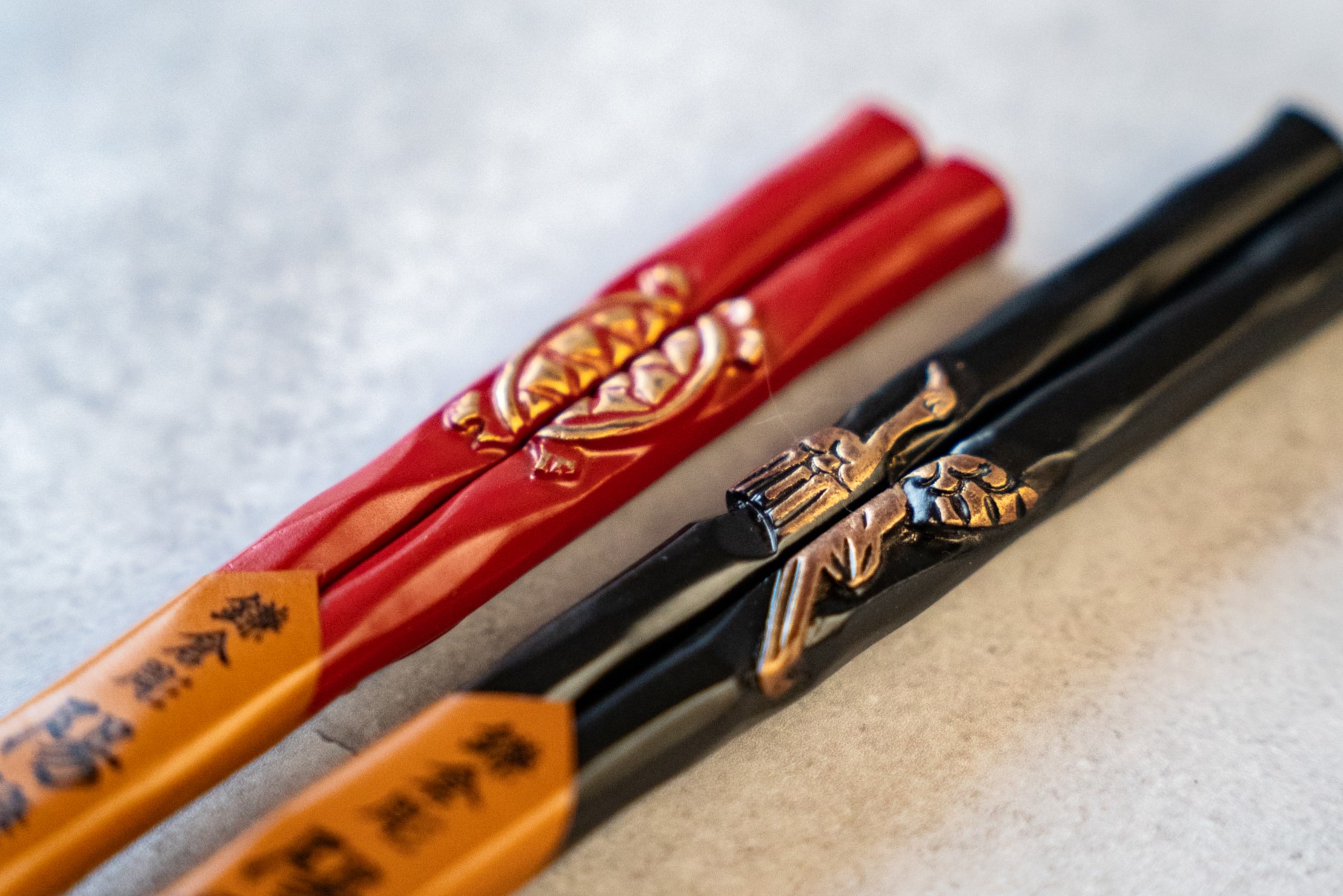 亀の文様が入った黒漆箸と、または鶴の文様が入った黒漆箸のセット商品もございます。