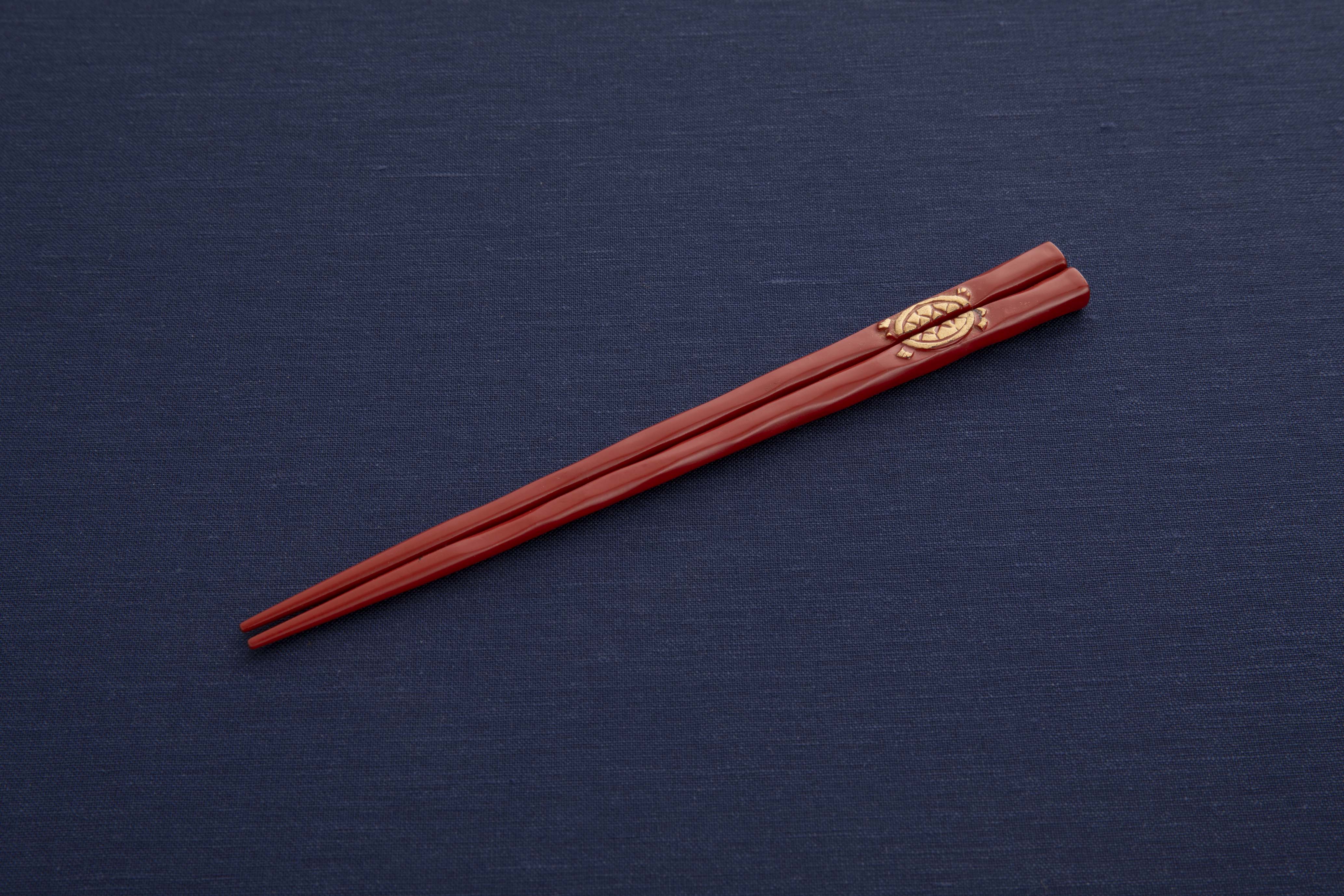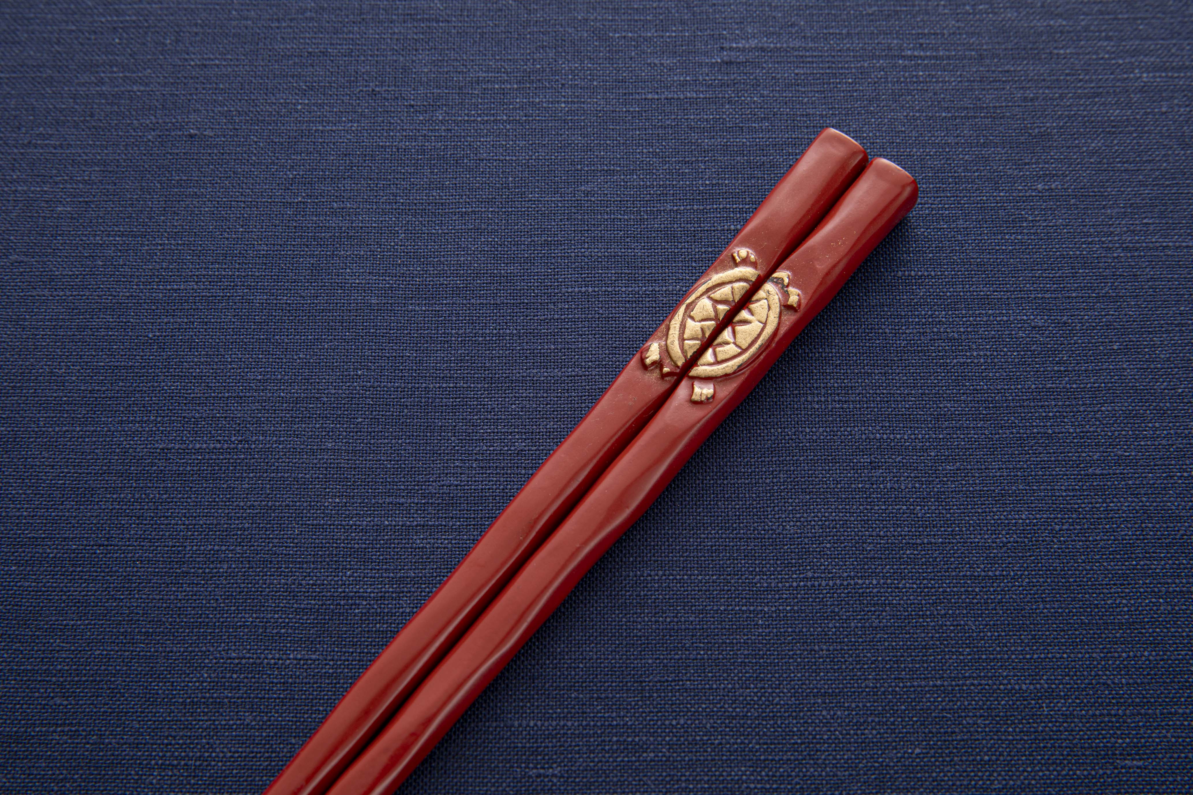 花塗一膳箸 亀 朱に金彩 紙箱入り