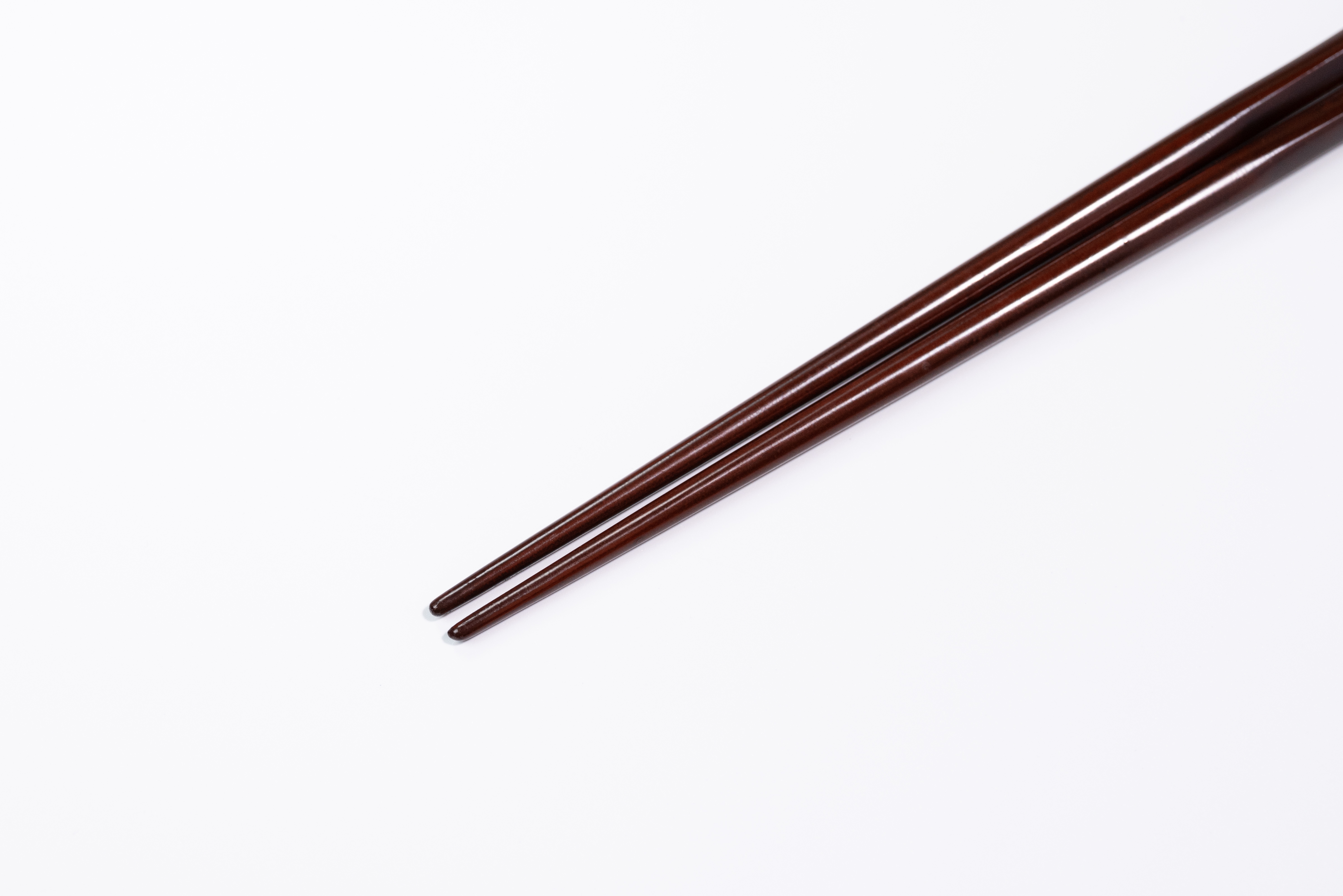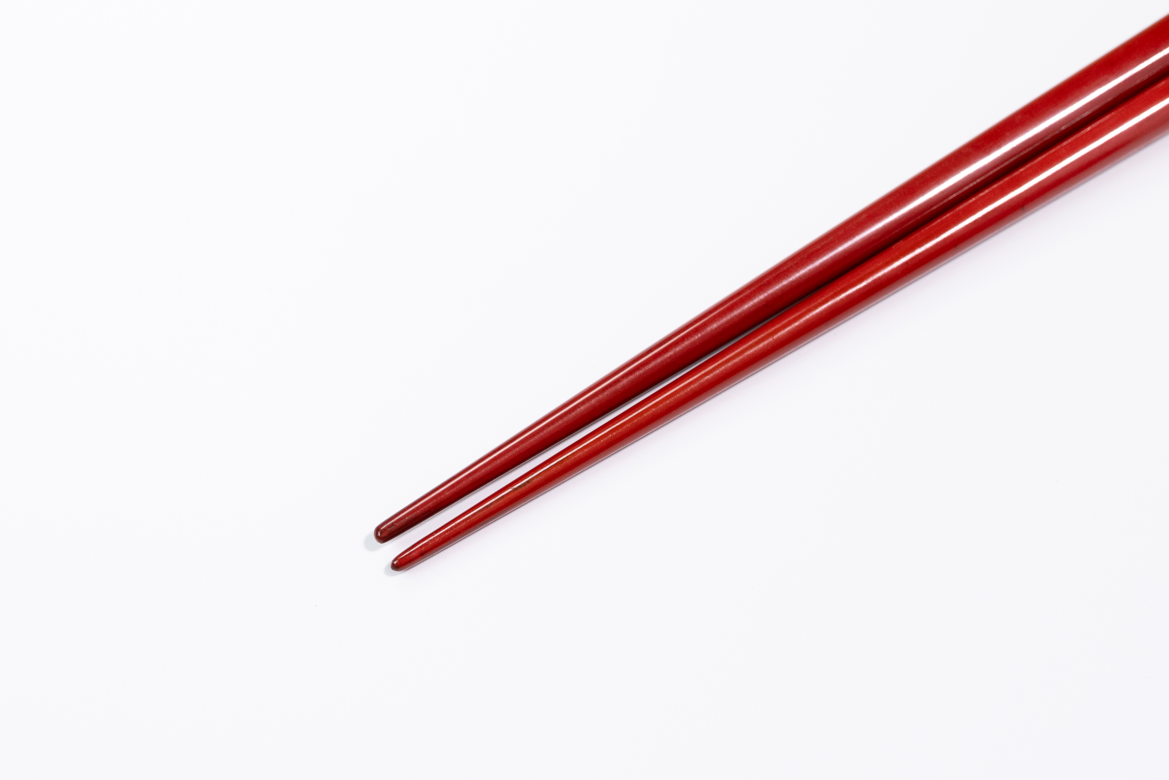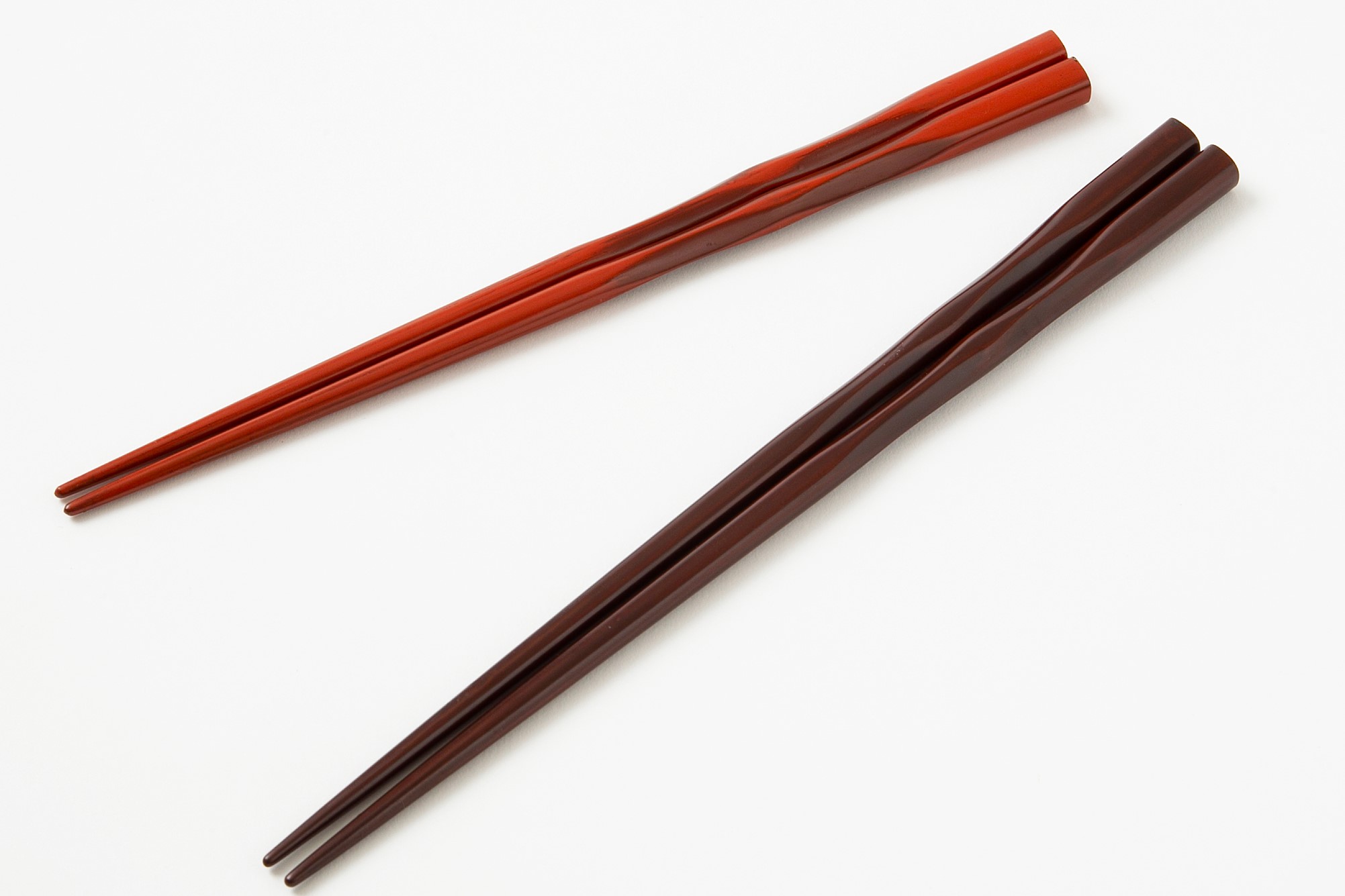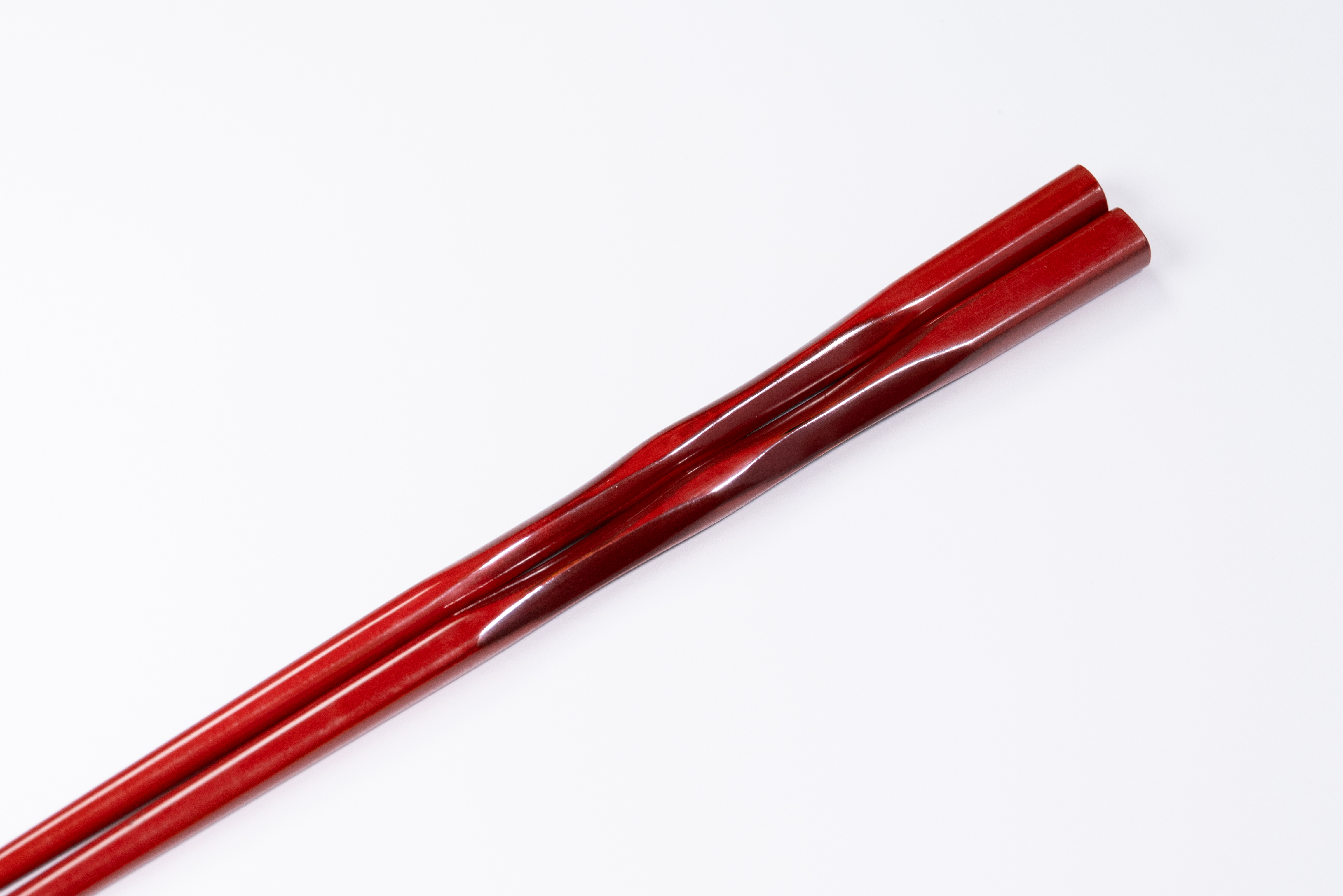 すっきりとしたデザインながら、持ちやすいよう良く考えられた削りを手元にデザインした小次郎箸。鎌倉彫の本漆ならではの光沢を楽しんで。