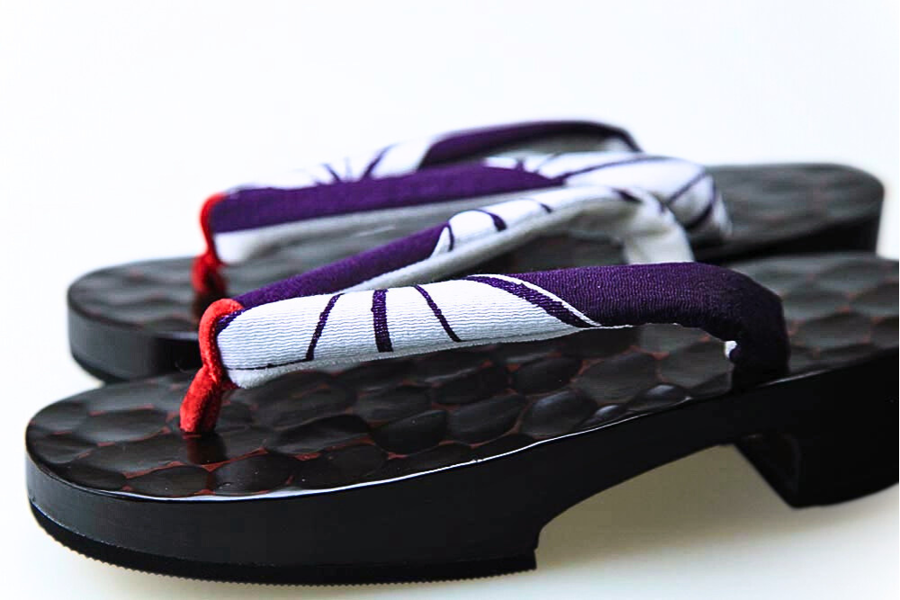 鎌倉彫らしい大きな刀目柄が施されたシンプルなお下駄です。鮮やかな鼻緒の組合せが粋なデザインとなっております。