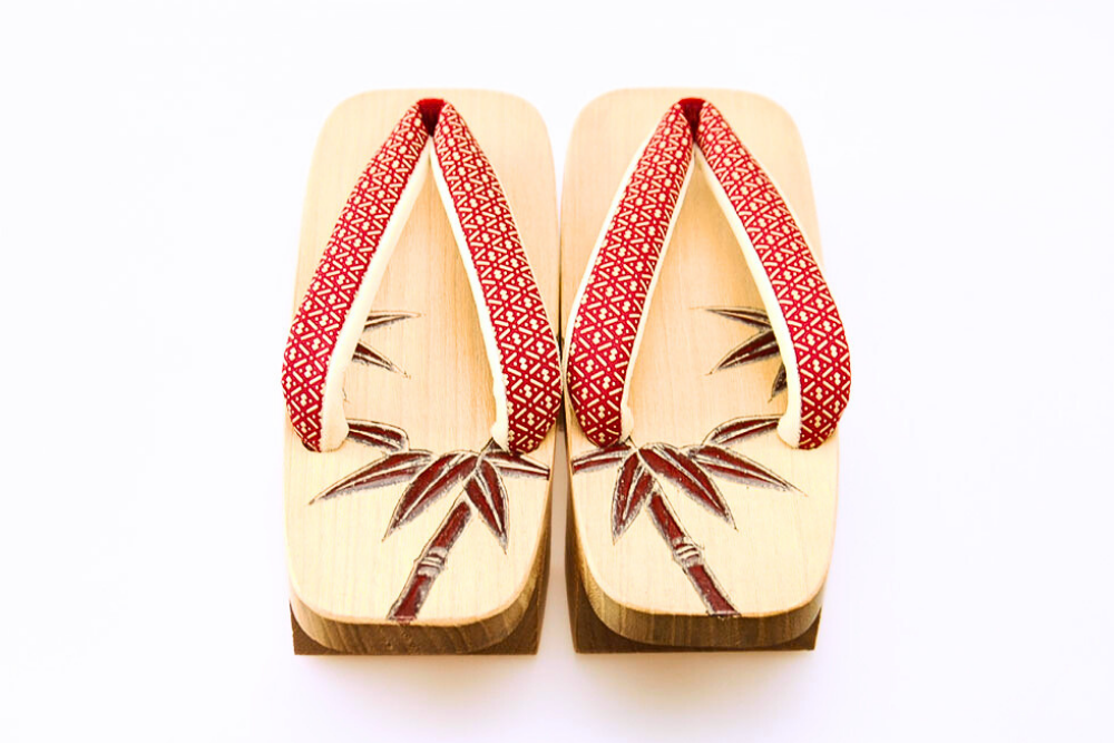 桐下駄の白木の柾目そのままを生かした上に、鎌倉彫の彫と漆で柄を刻んだ個性的なデザイン。白木に汚れが付きにくいよう磨きを施してあります。浴衣の他、紬・ウール・小紋にもお使いいただけるほか日常のお服の足元にも粋です