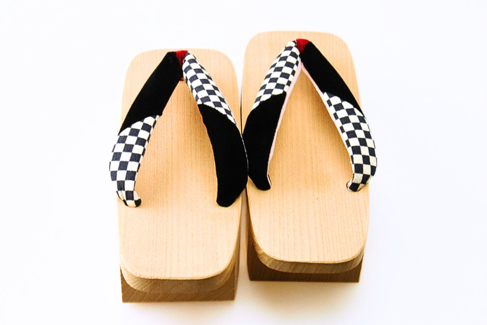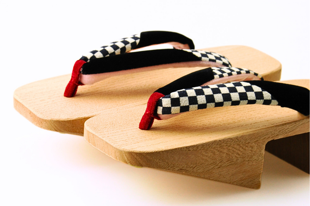 白木の杉がすがすがしいお下駄。のめり下駄は別名千両とも呼ばれ、二本歯よりも歩きやすいのが特徴です。浴衣の他日常のお服の足元にも粋です