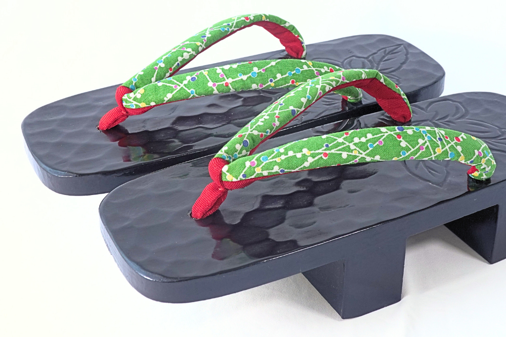 カランコロンと粋な音を鳴らしながら歩けるよう、あえて下駄裏にゴムの加工はしておりません。