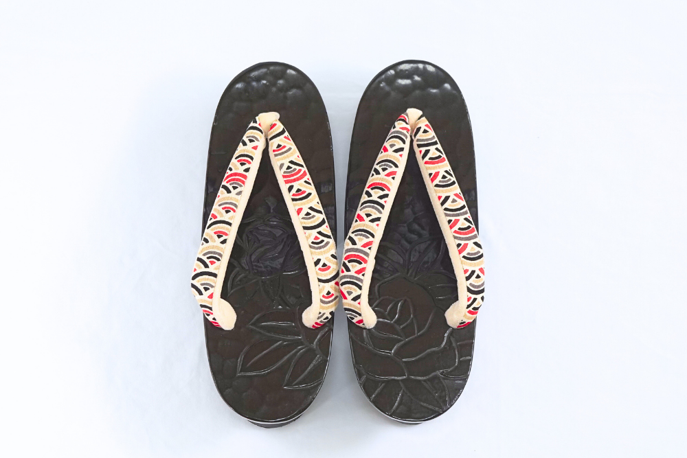 大きく花を咲かせる薔薇の彫りが美しい、大人の下駄です。