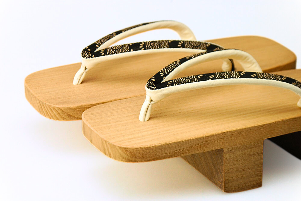木目が細かく、軽くて上品な桐の下駄。白木の清々しい感触をお楽しみください。浴衣はもちろん日常の服にも粋です。鼻緒は印伝