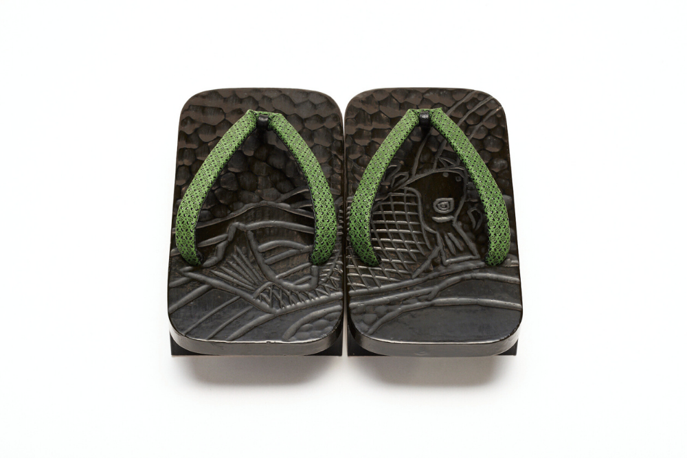 厳選された桐の台に、鎌倉彫の伝統技法で「鯉」の文様が施された紳士下駄です。