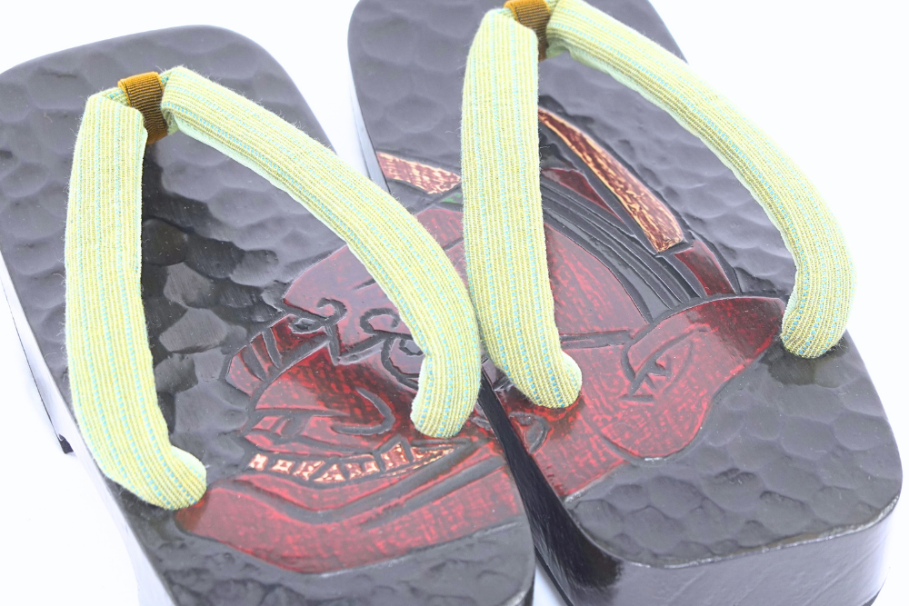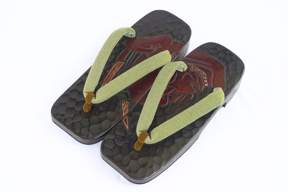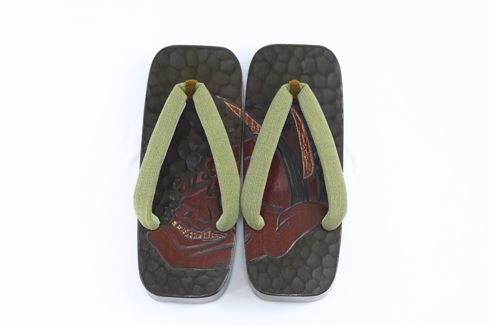 ひとつづきになるように掘られた般若の彫りが美しい、大人の下駄です。