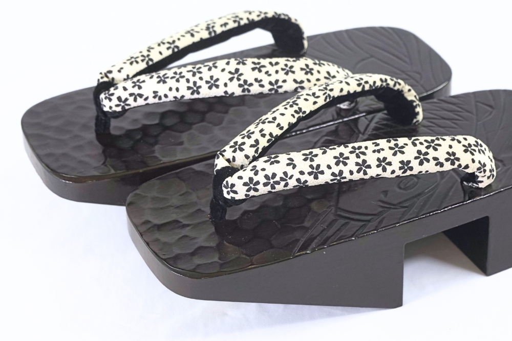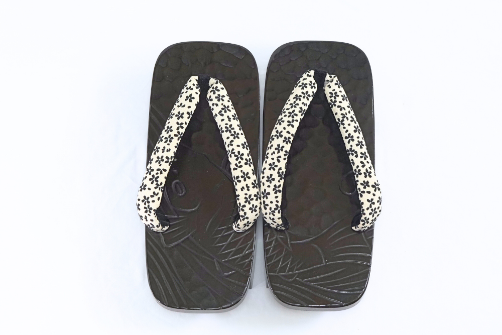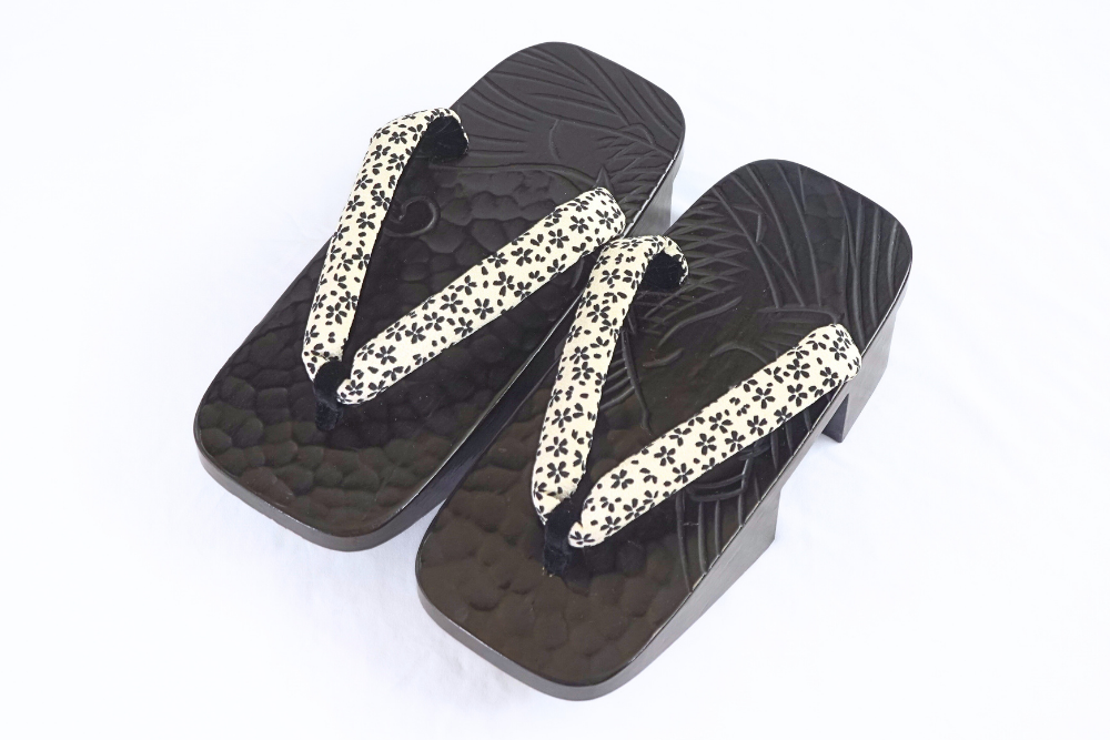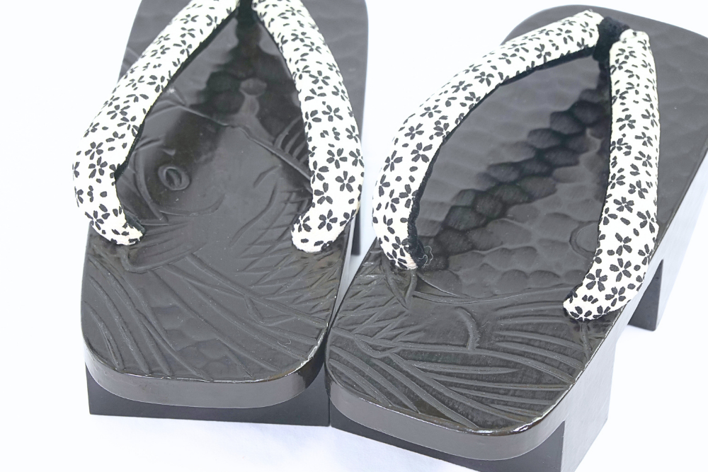 下駄を脱いだ時に柄がひと続きになる、粋なデザインがポイント。