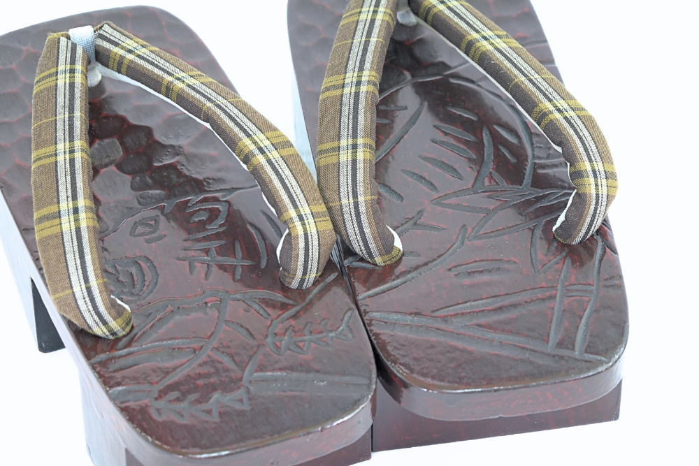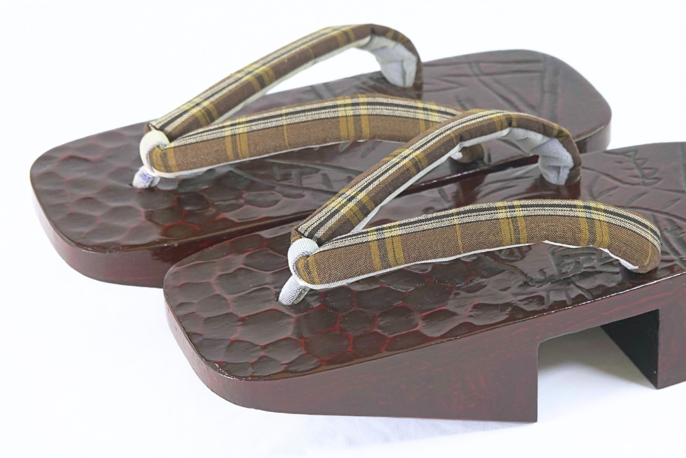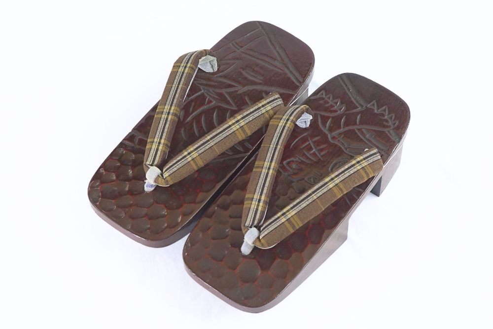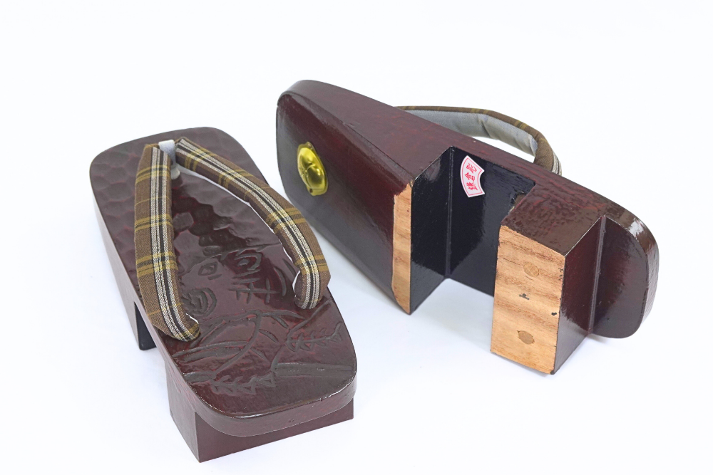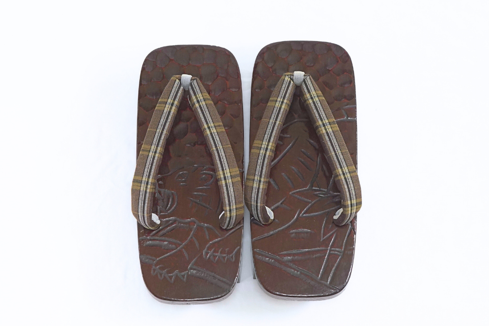 厳選された桐の台に、鎌倉彫の伝統技法で「虎」の文様が施された紳士下駄です。