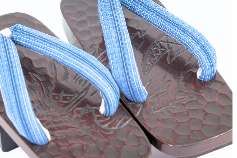 下駄を脱いだ時に柄がひと続きになる、粋なデザインがポイント。