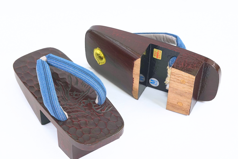 前に倒して歩くため、より前に倒しやすいように歯の形を考えられた下駄です。