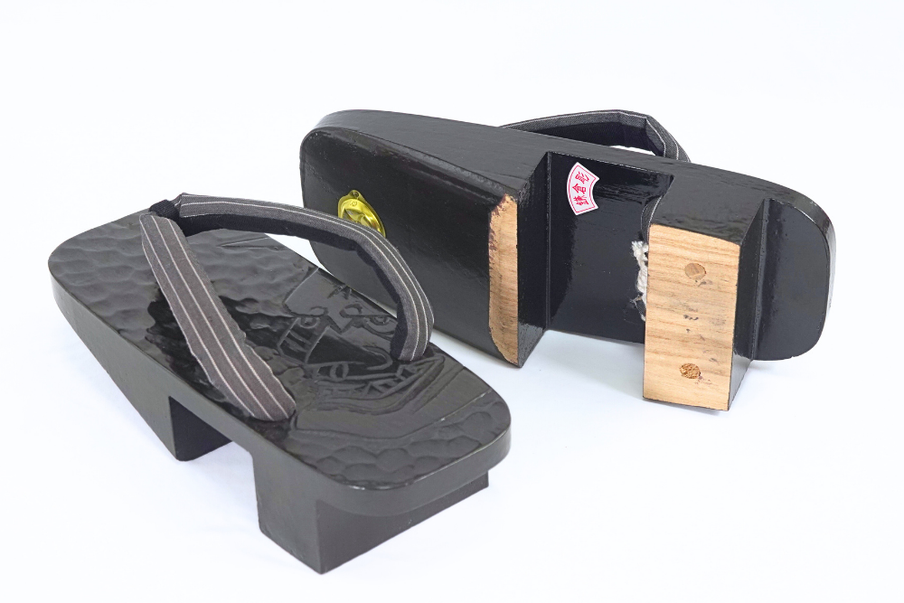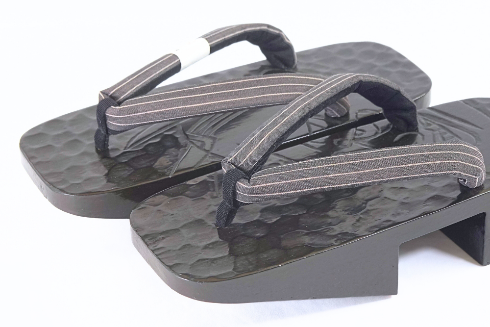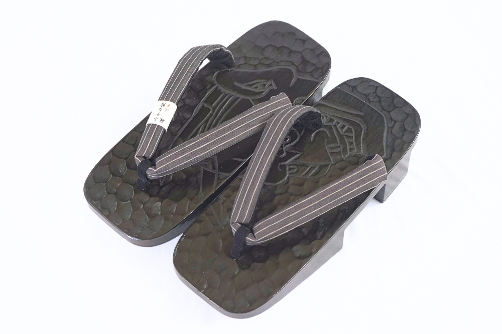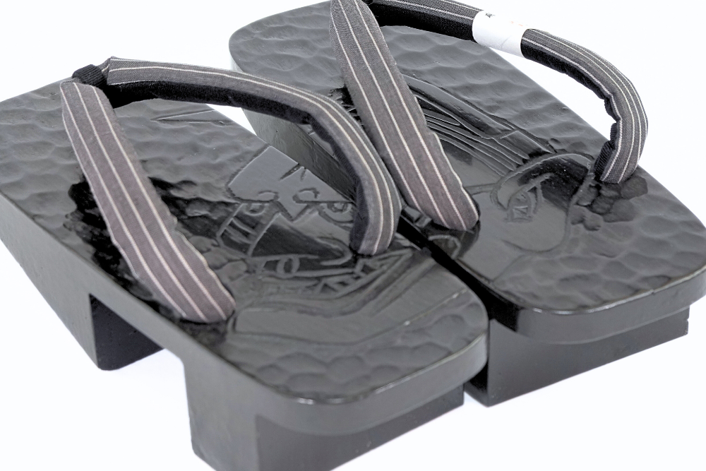 厳選された桐の台に、鎌倉彫の伝統技法で「般若」の文様が施された紳士下駄です。