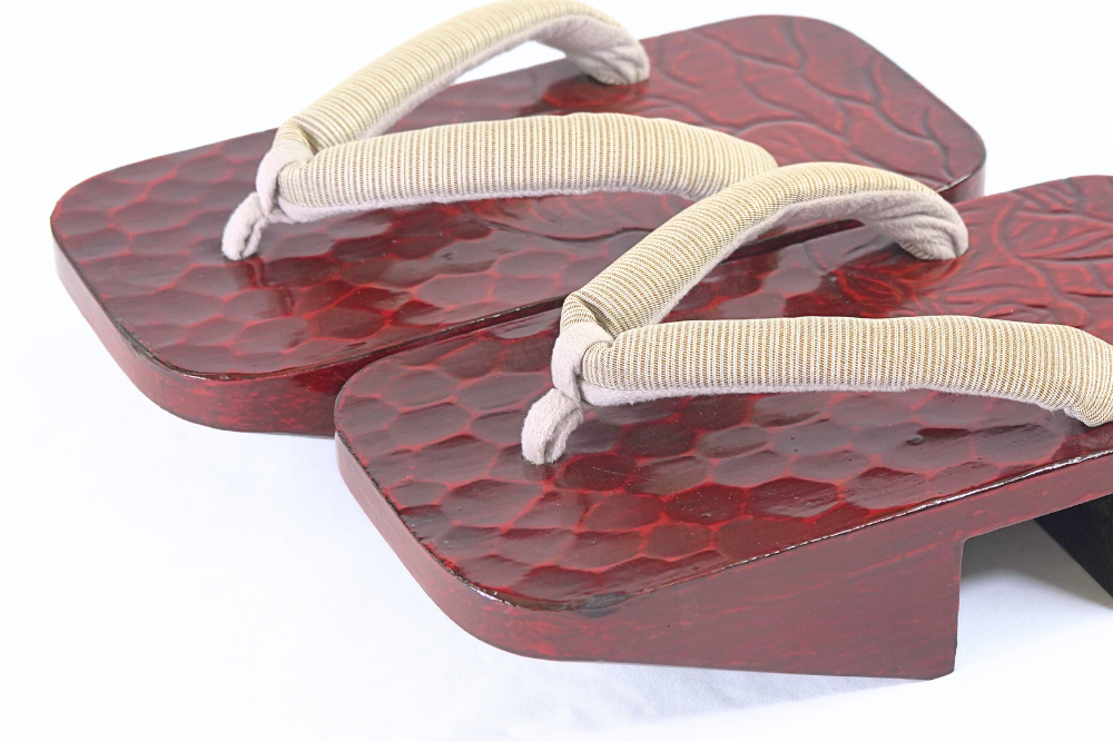 のめりの下駄は、伝統的な下駄の形。