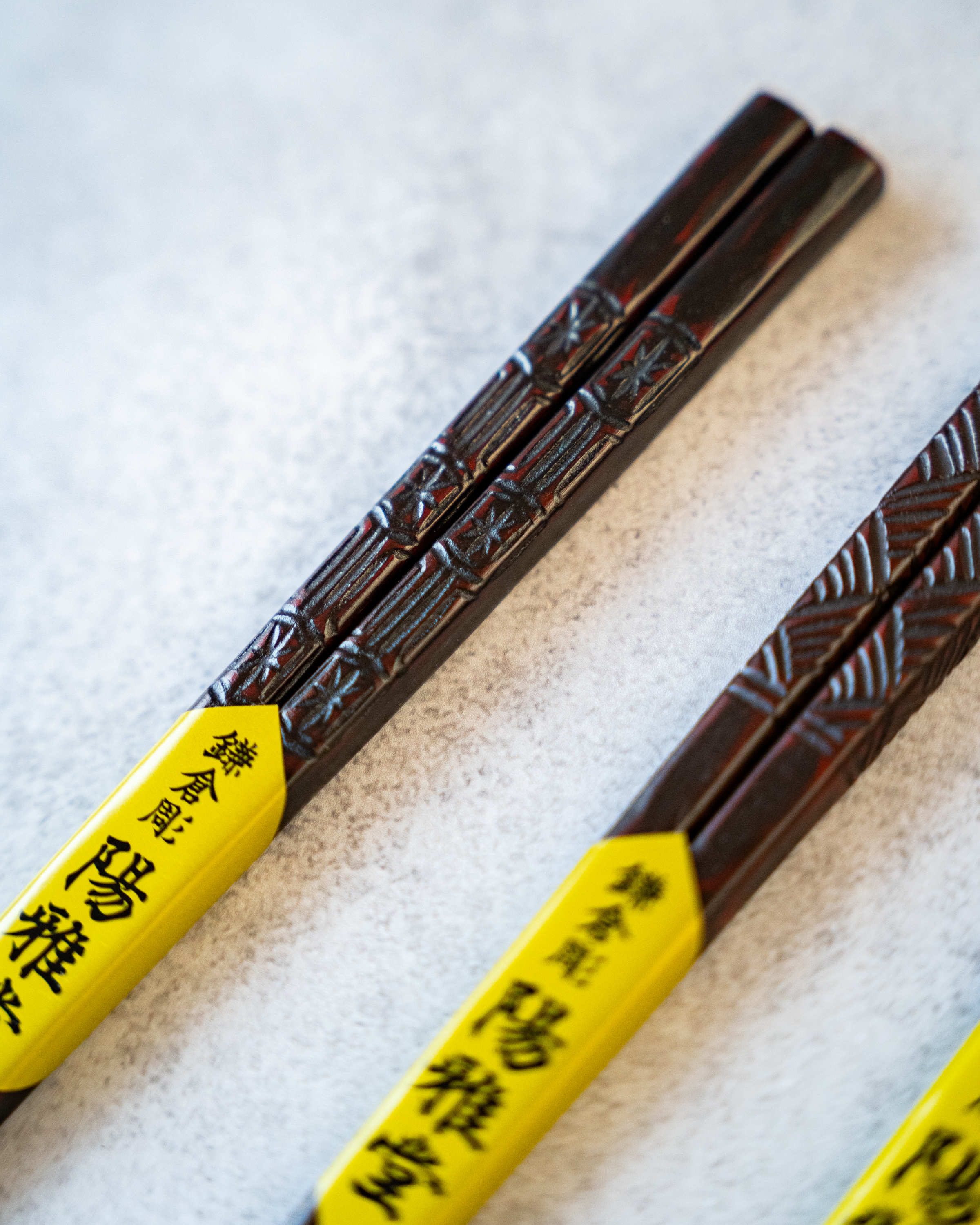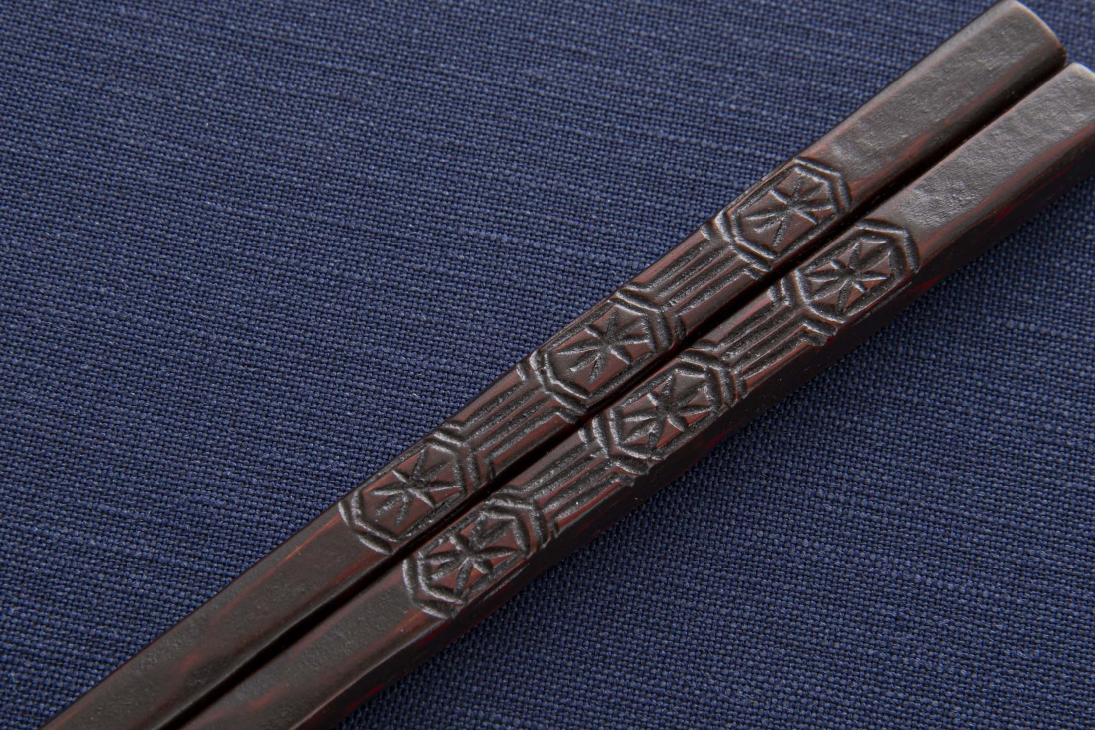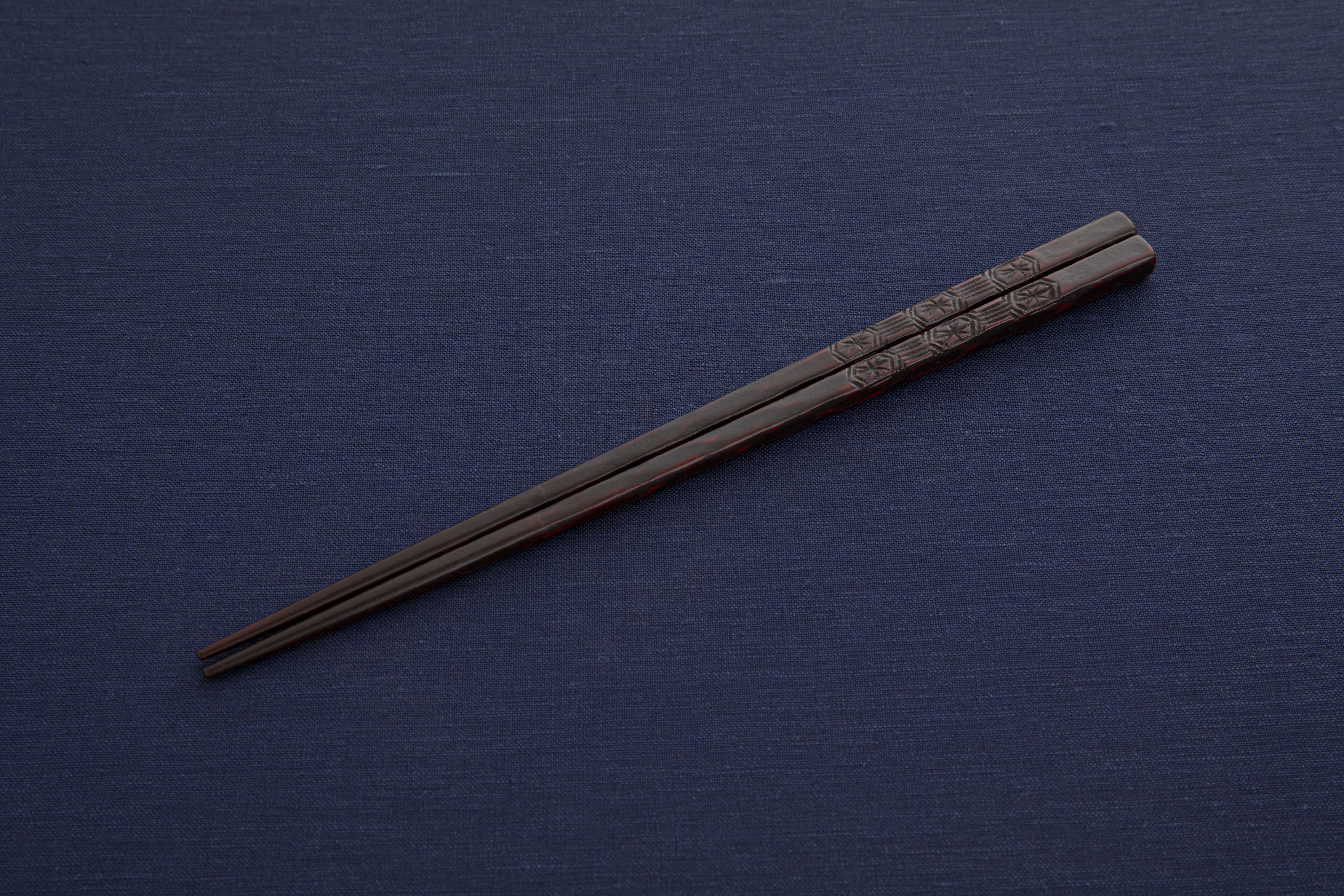 縁起の良い模様を彫った鎌倉彫のお箸。亀甲紋様は長寿や末永い健康の祈りが込められています。鎌倉彫らしいお色と風合いをお楽しみいただける乾口塗りのお箸です。