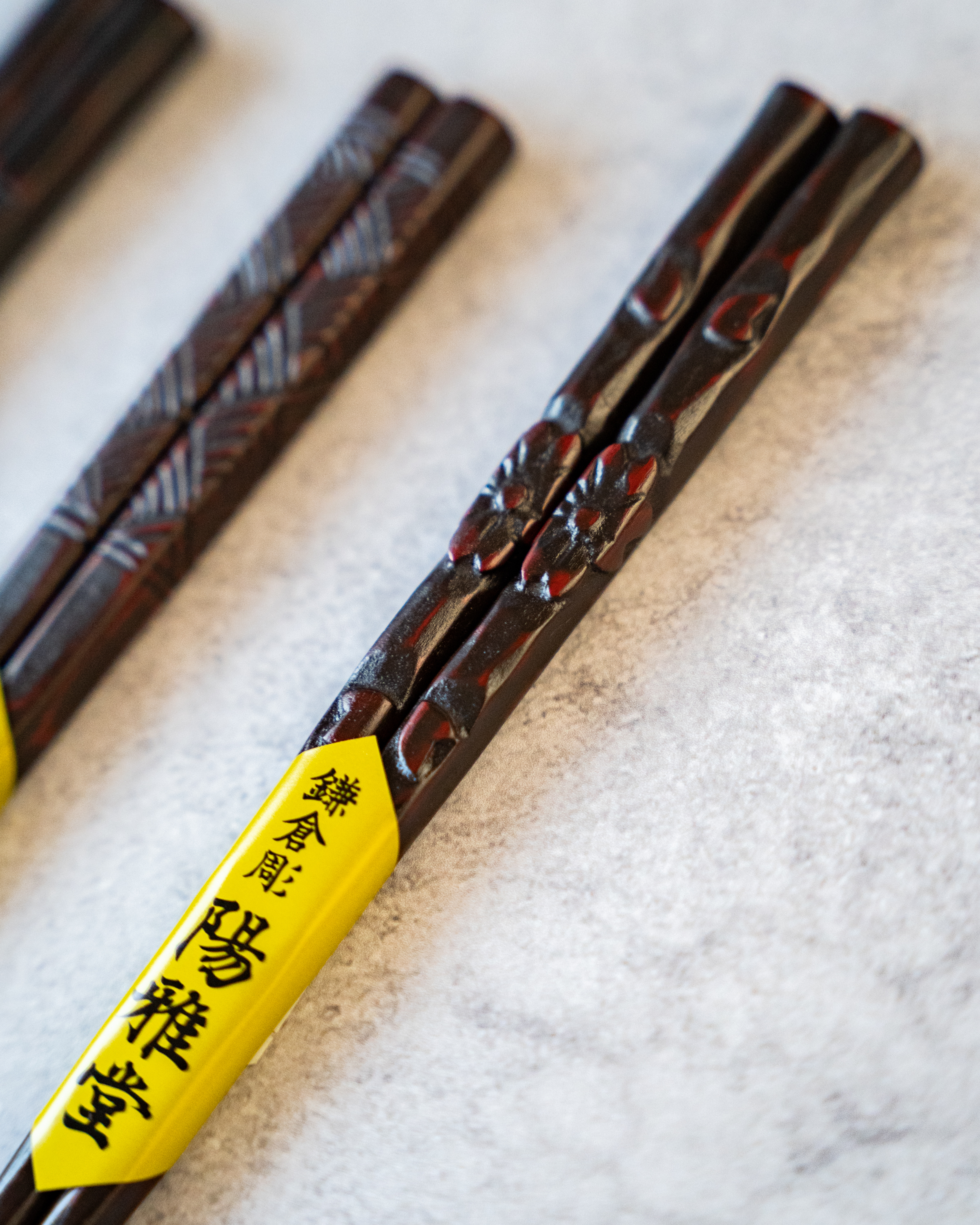 はんなりとした桜の花びらを手元に鎌倉彫で彫りました。どなたにも喜ばれる桜の模様は冠婚葬祭、卒業のお祝い・卒業記念などどんな場面にも。鎌倉彫らしいお色と風合いをお楽しみいただける乾口塗りのお箸は、使い込むほどに彫りが深まり漆に表情が増します。箸は専用の箱に入れてお届けいたします(箱入りの写真はイメージです。実際の商品とは異なります)