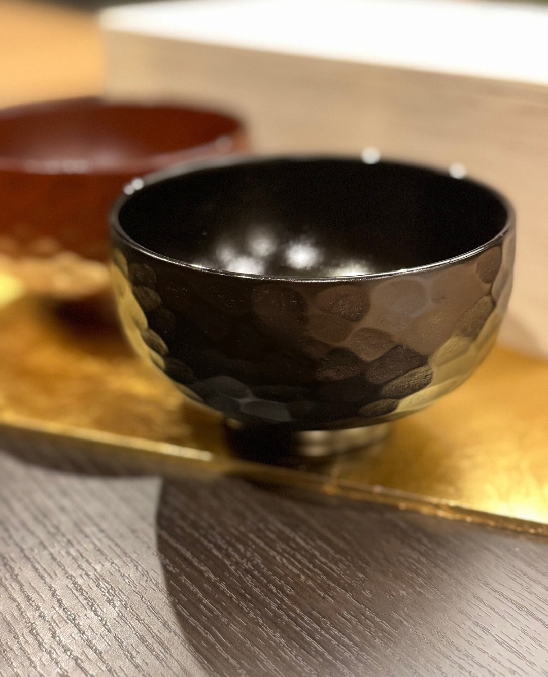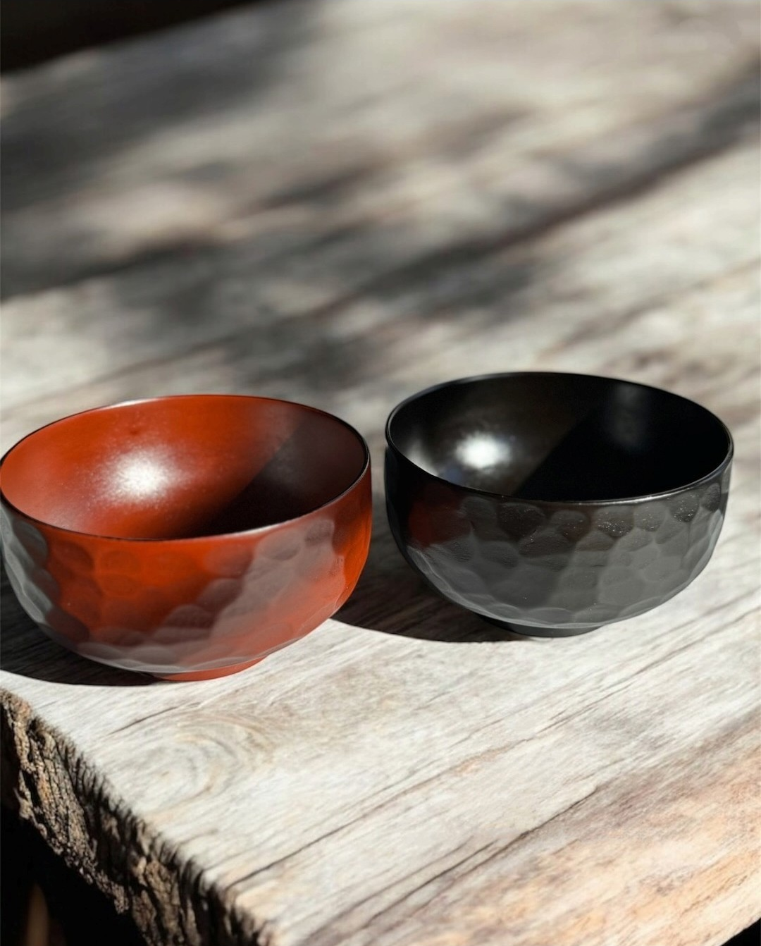 彫刻刀の刀目の美しさが際立つ汁椀「龍峰」。たっぷりと重厚感があり、彫りのダイナミックな陰影が醸す深い味わいが特徴です。桂の材質が軽やかに手に馴染み、使い勝手も抜群。深さも充分にこざいます。朱と黒の漆のコントラストも美しい逸品です。